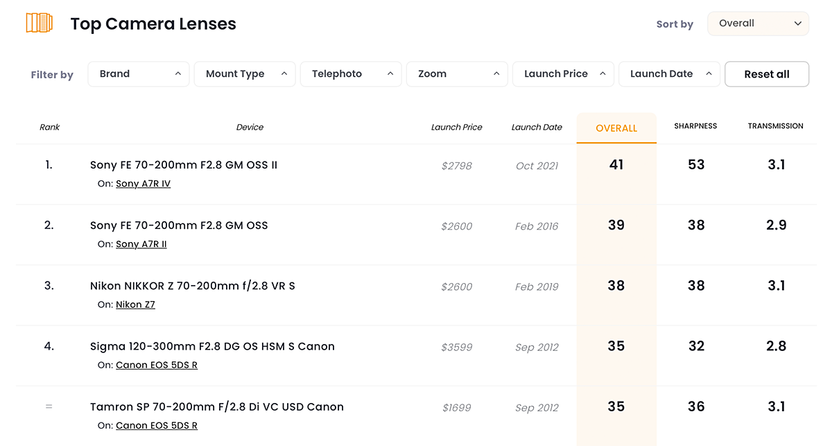 You can view the results for all tested lenses and create your own comparisons and in-depth analyses using our interactive image lens comparison tool.